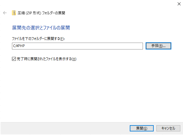 (以下はC:ドライブ直下の「PHP」フォルダに展開する場合)
